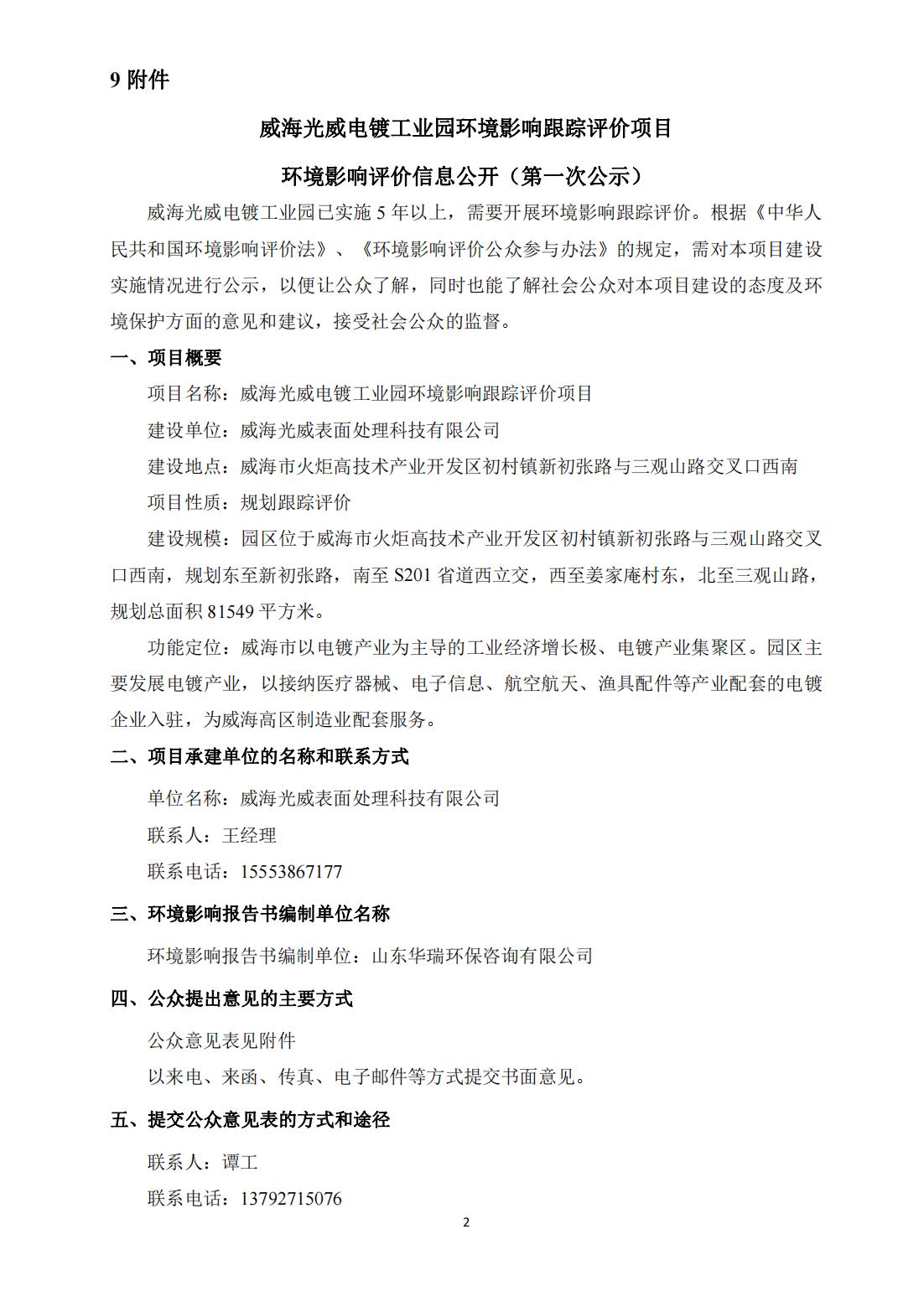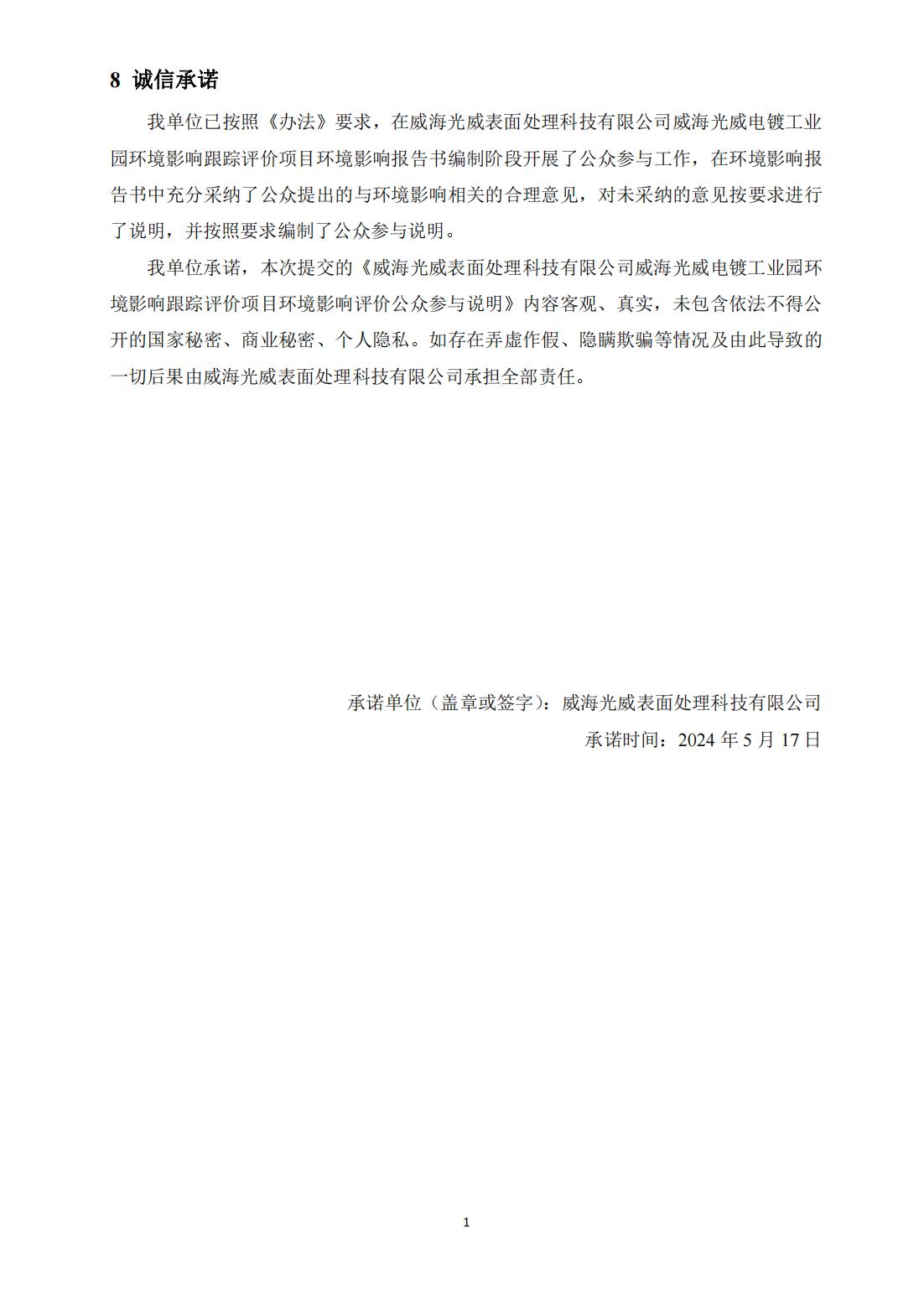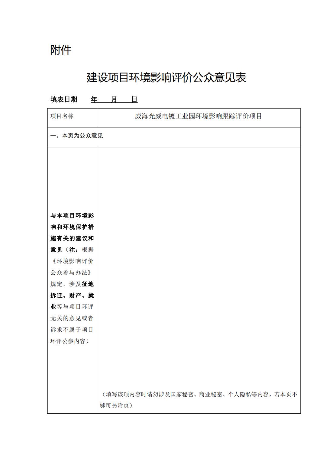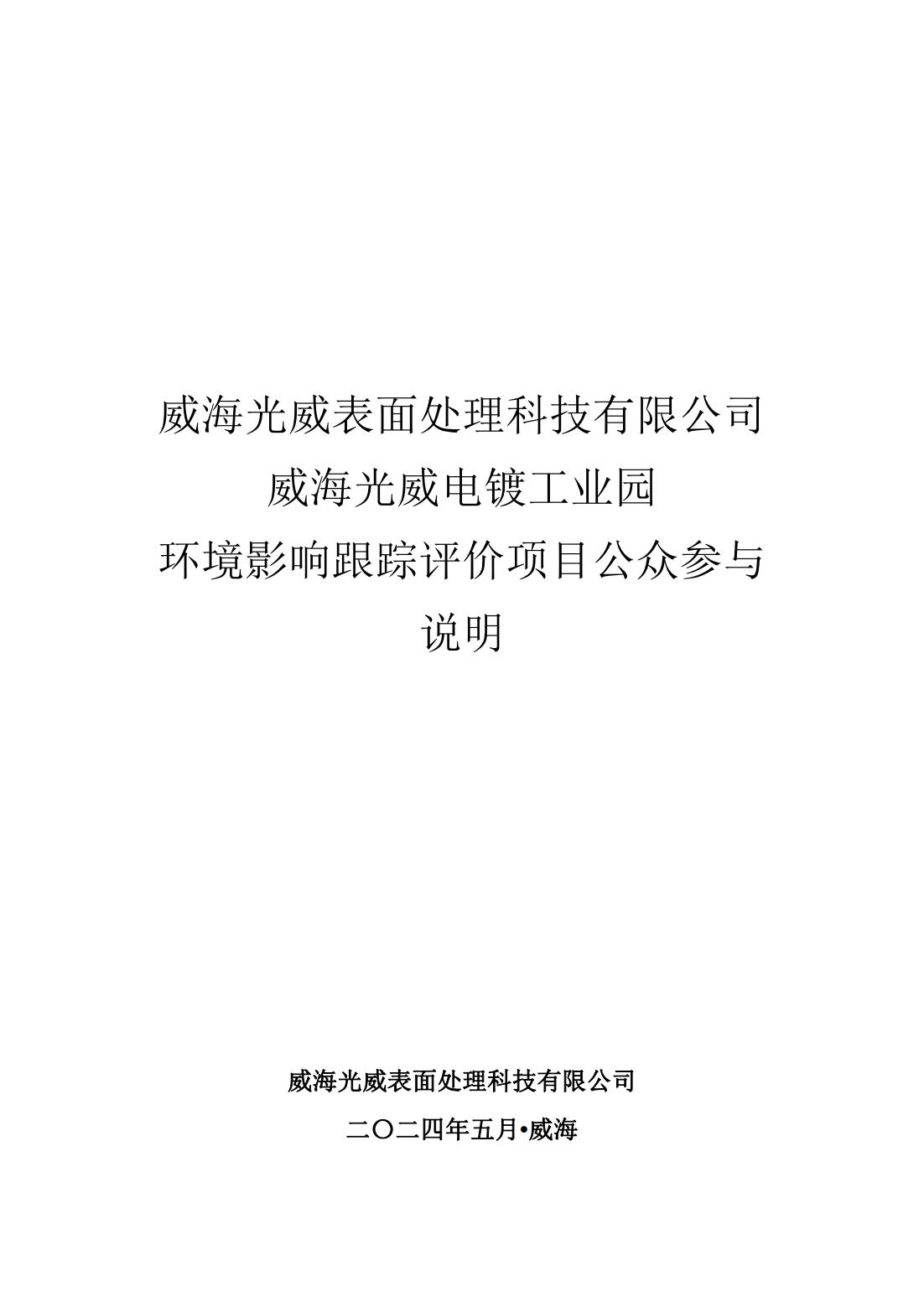 威海光威表面處理科技有限公司威海光威電鍍工業(yè)園 環(huán)境影響跟蹤評(píng)價(jià)項(xiàng)目公眾參與說明