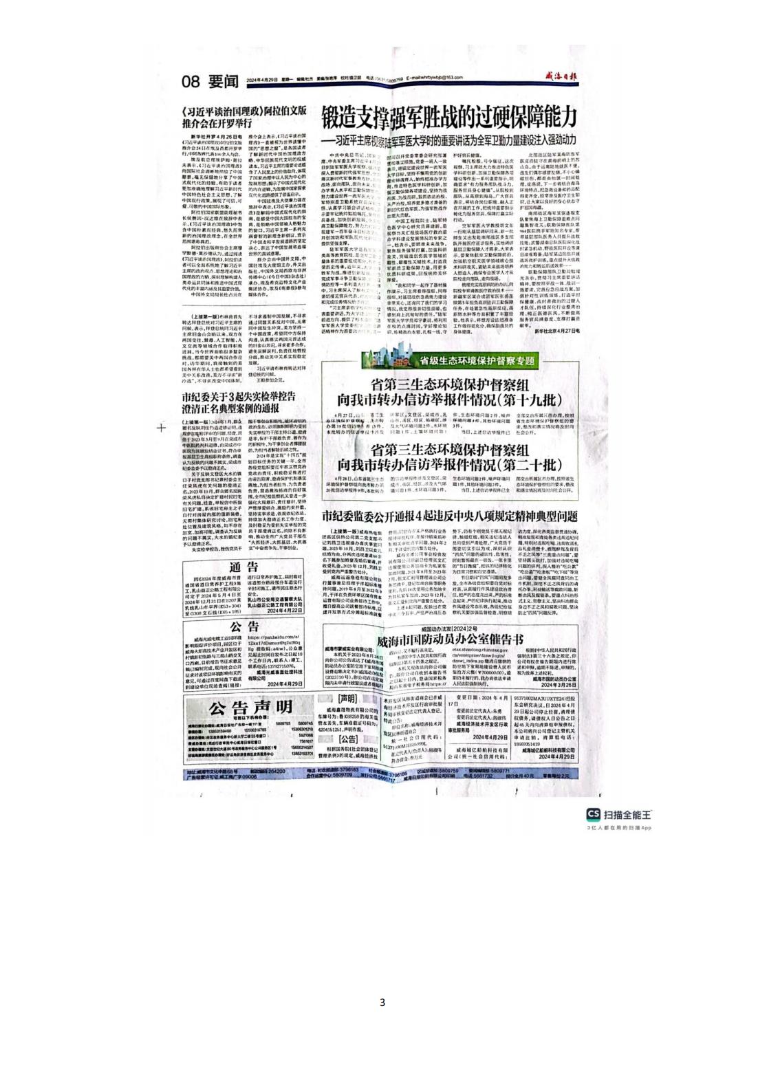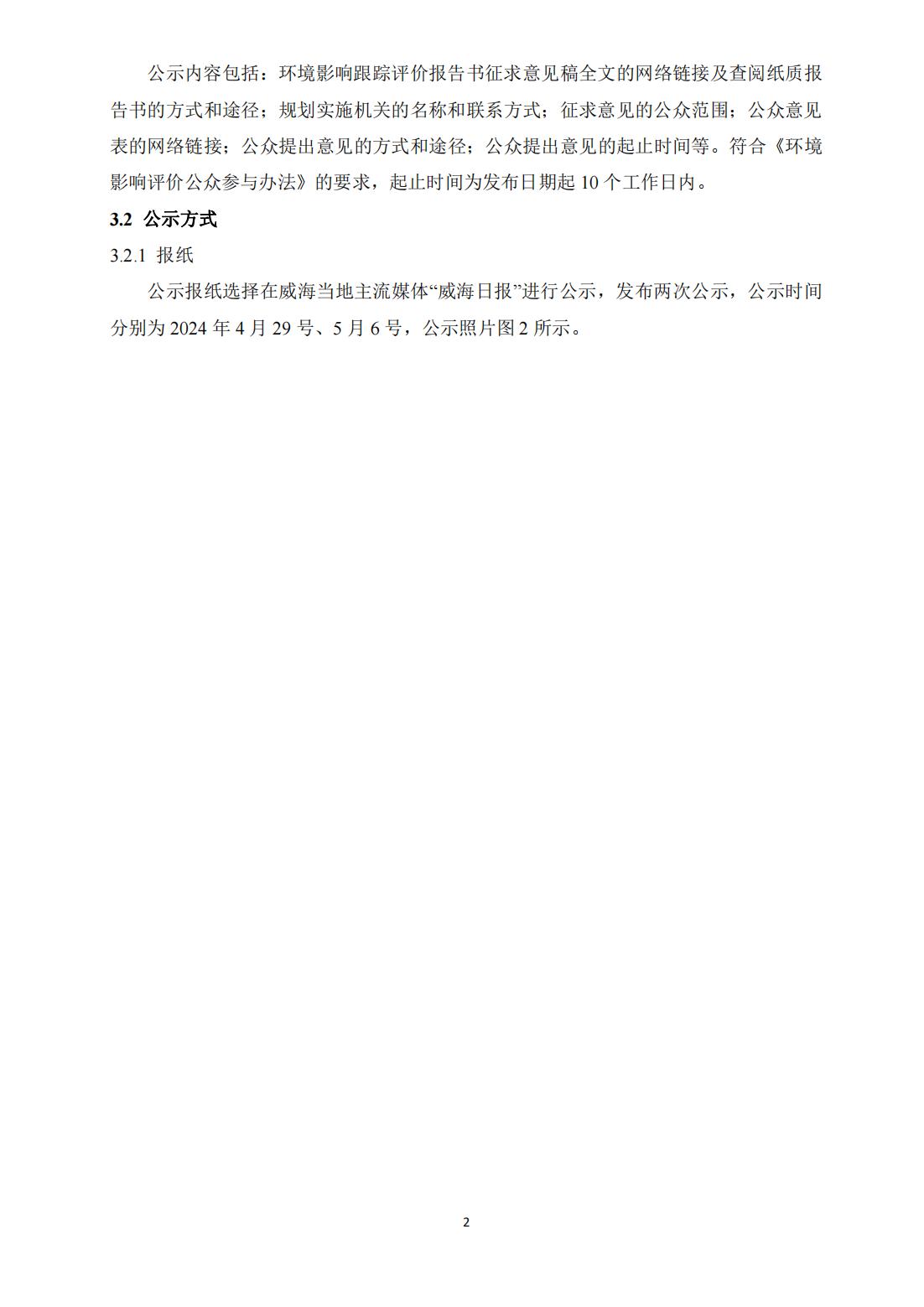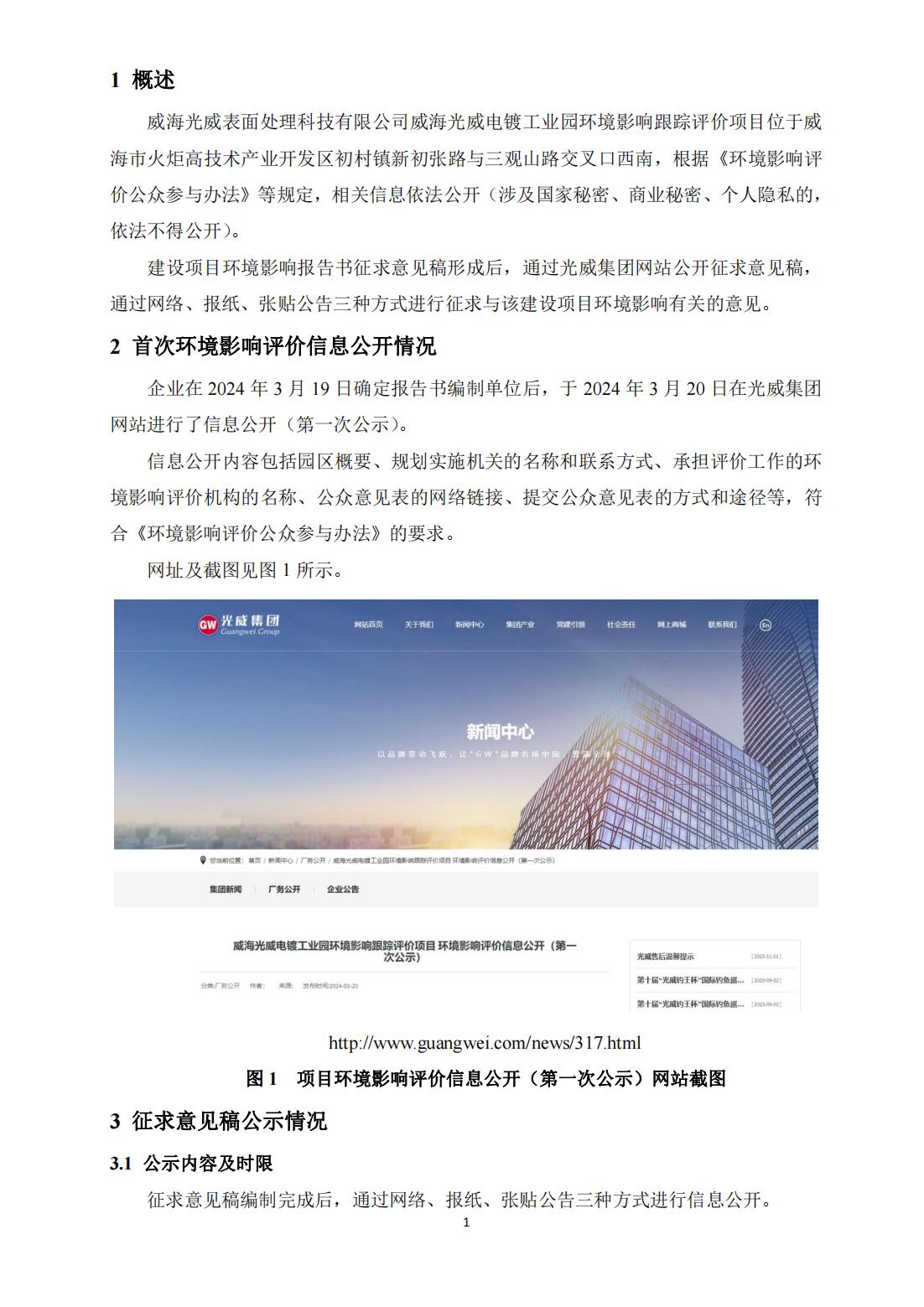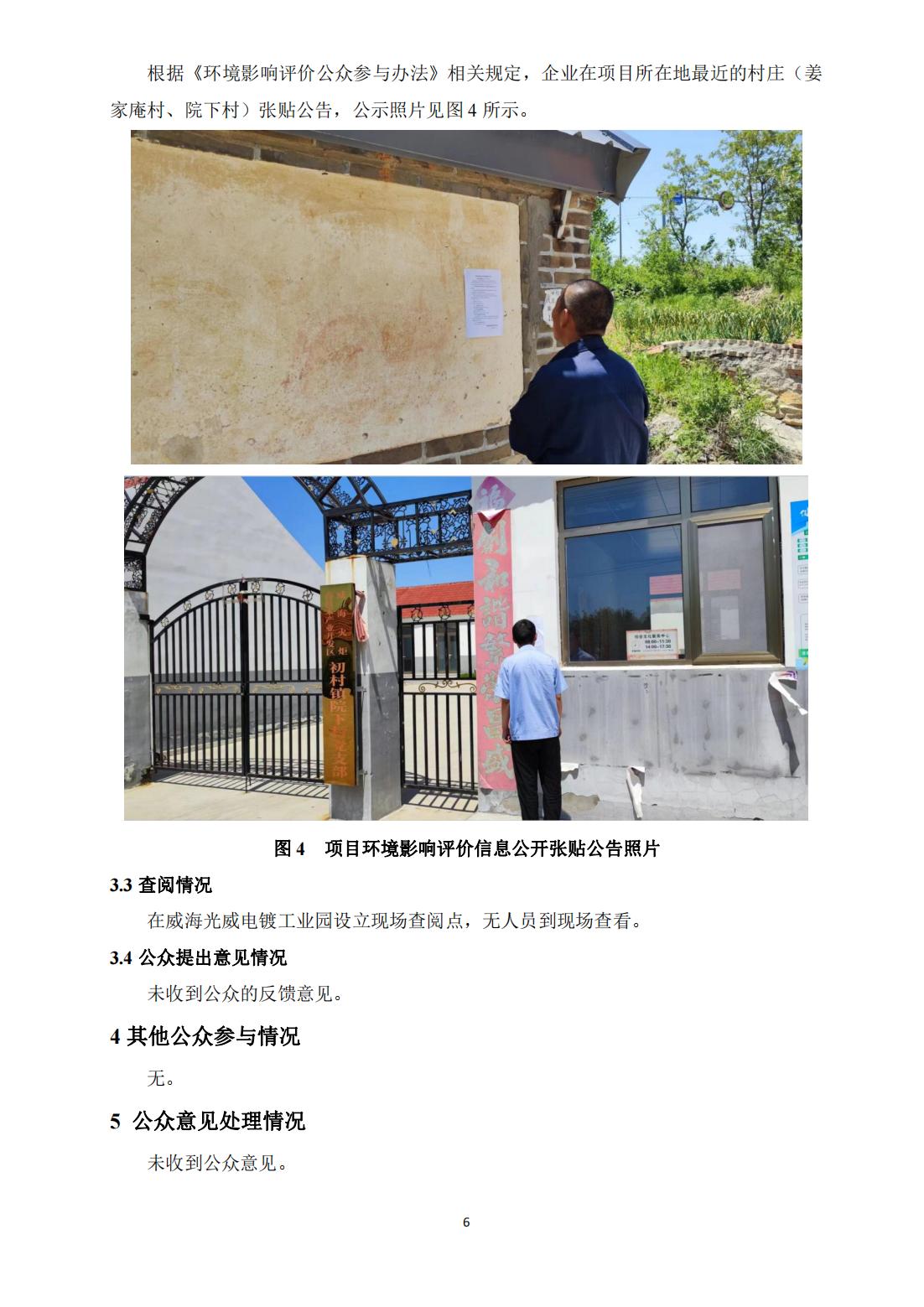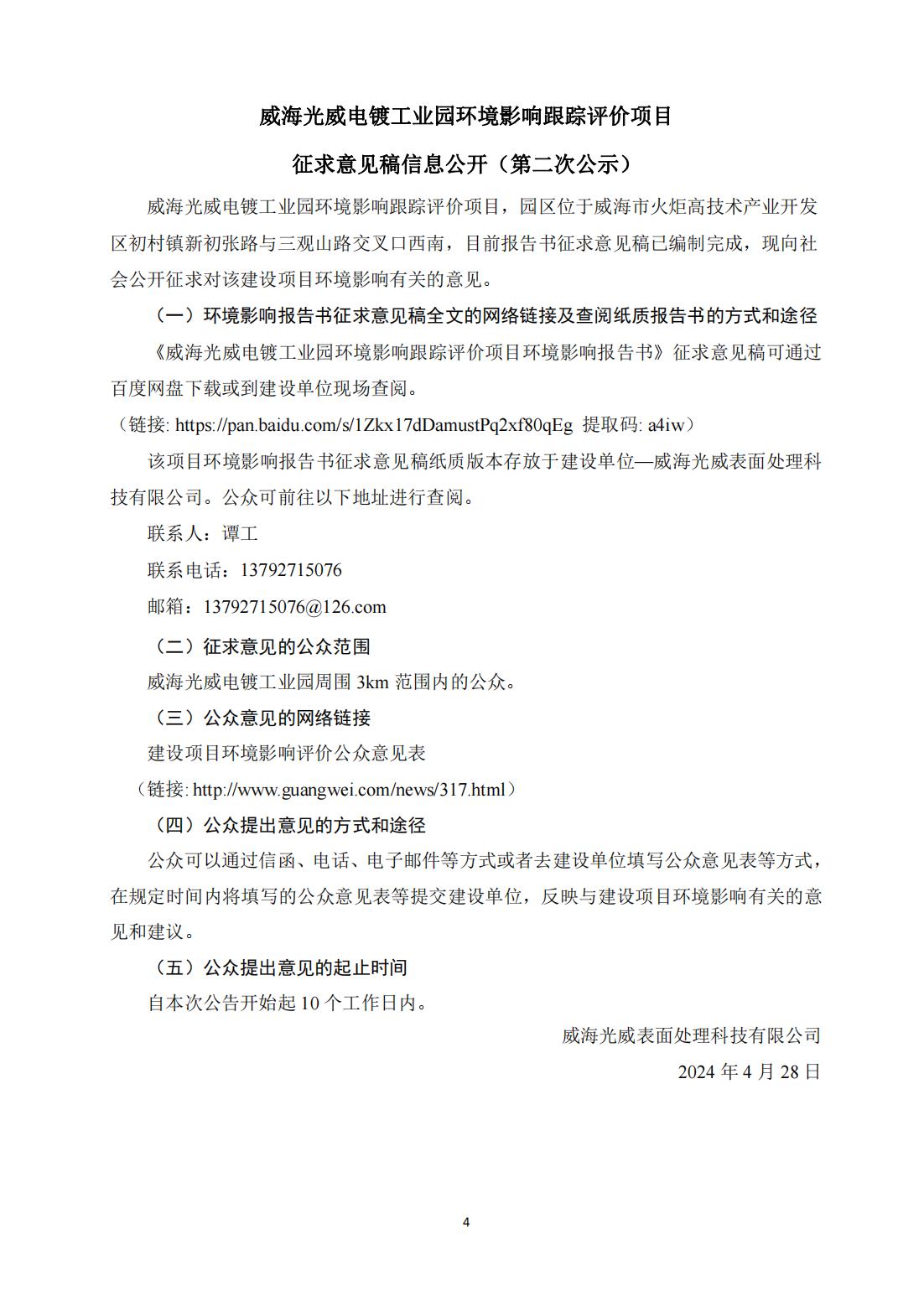 威海光威表面處理科技有限公司威海光威電鍍工業(yè)園 環(huán)境影響跟蹤評(píng)價(jià)項(xiàng)目公眾參與說明
