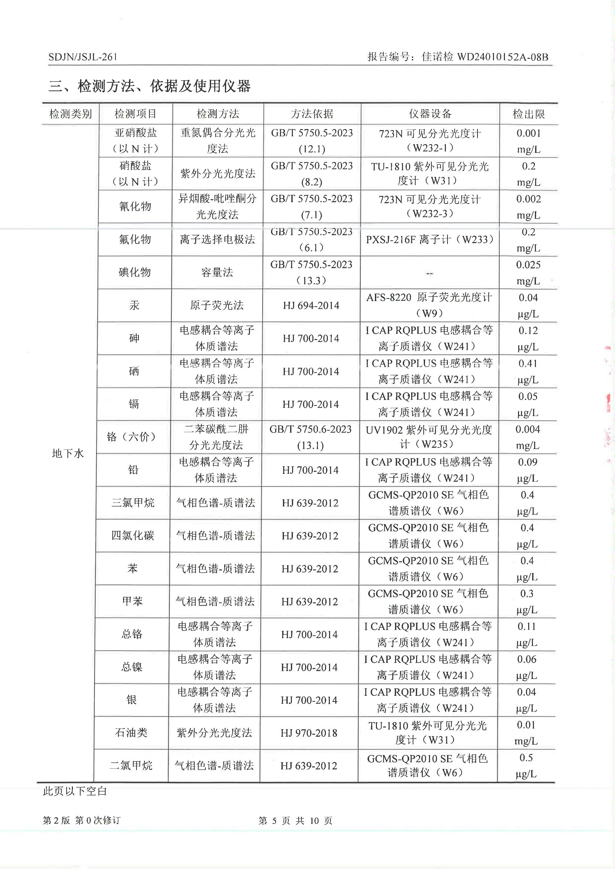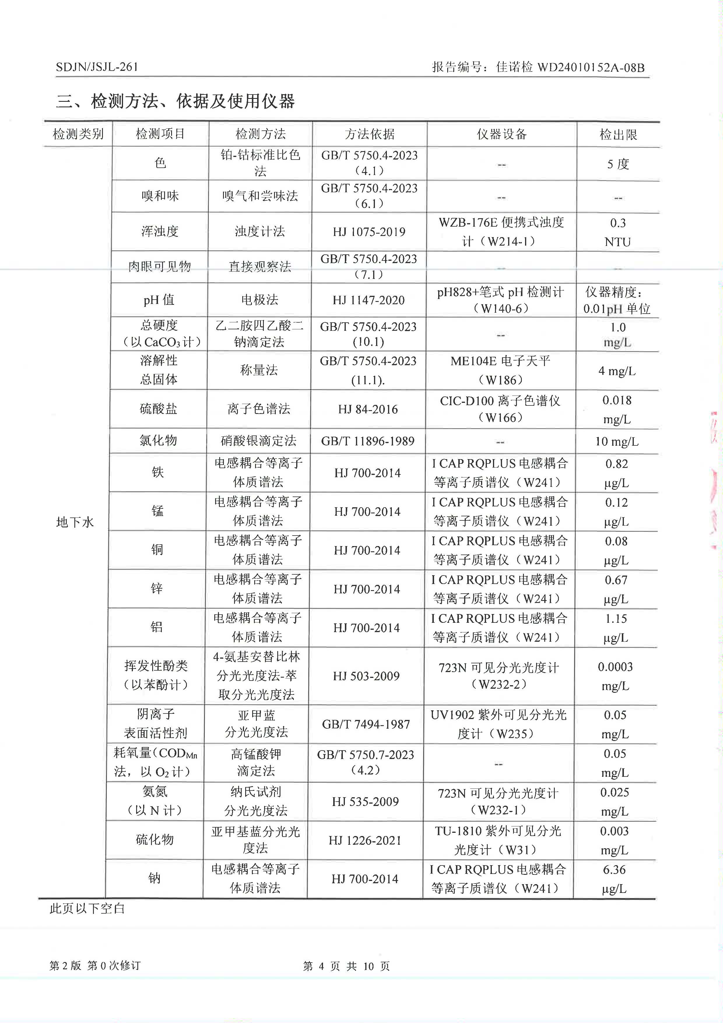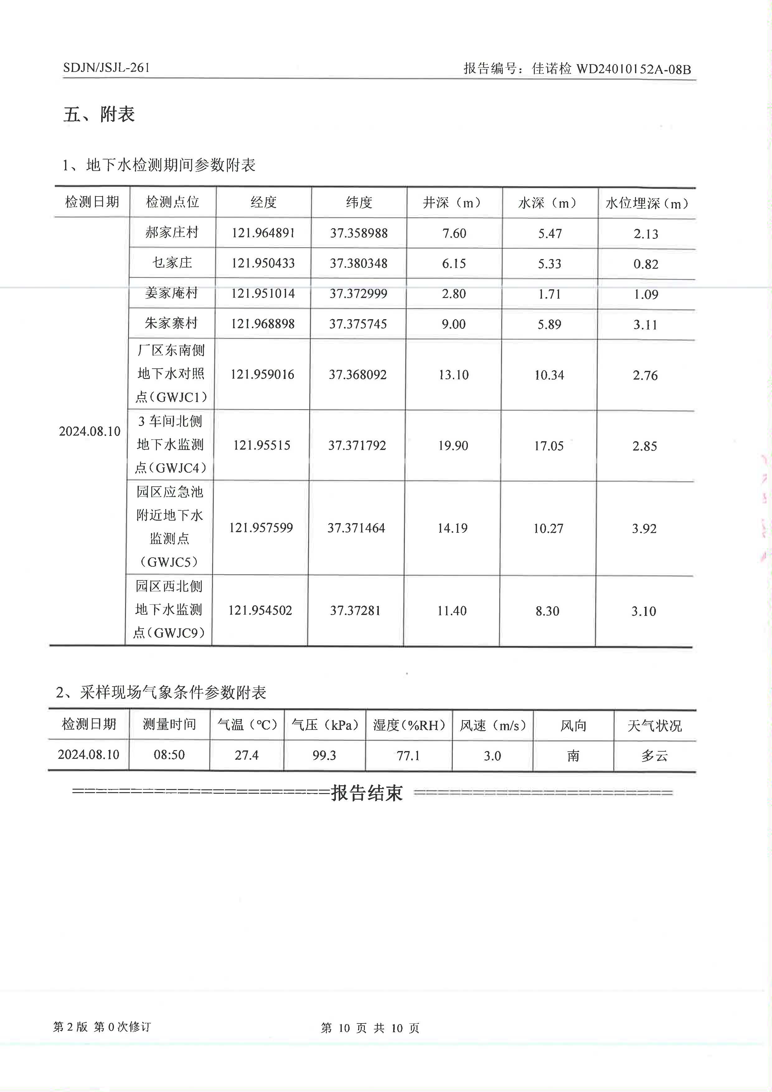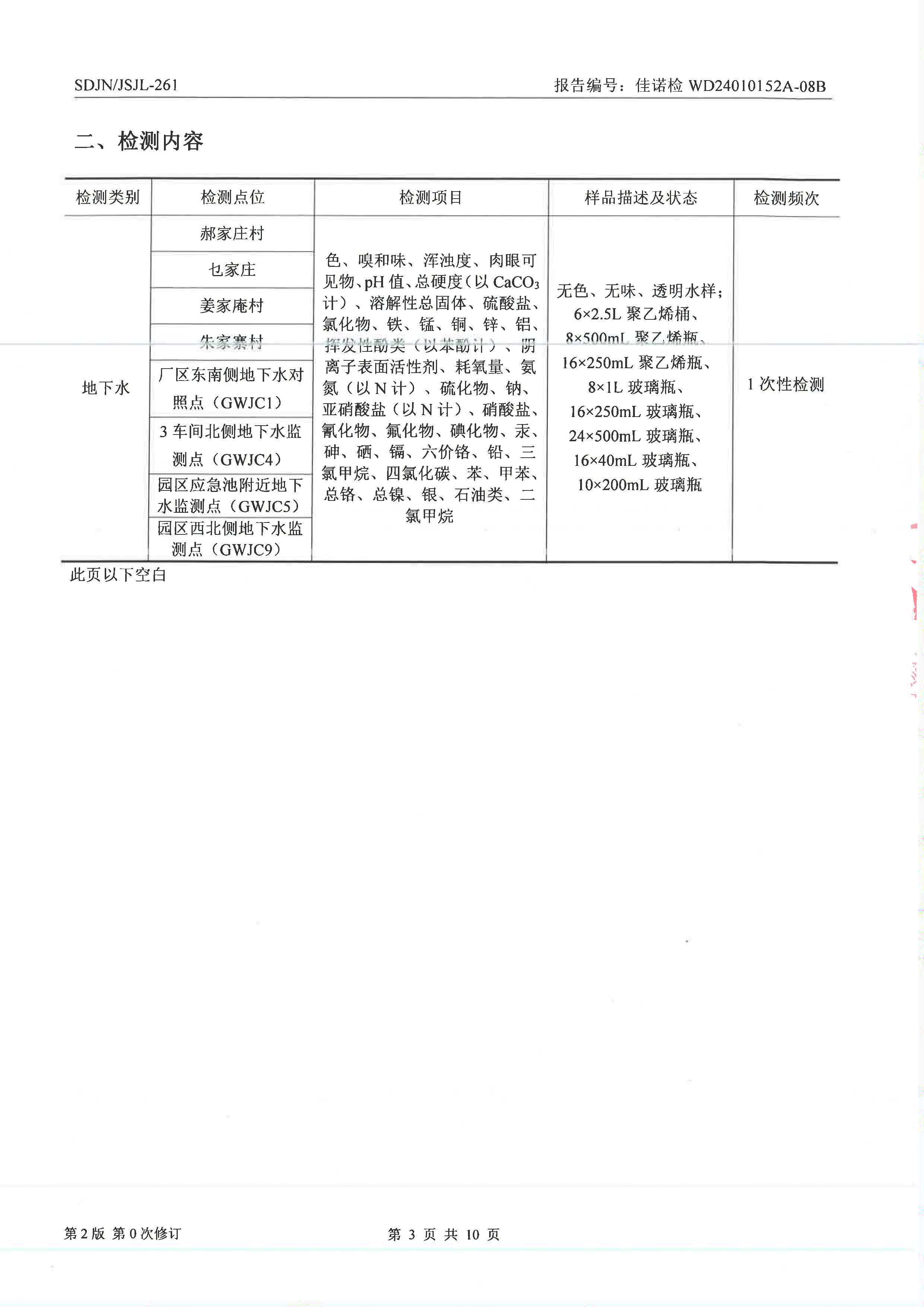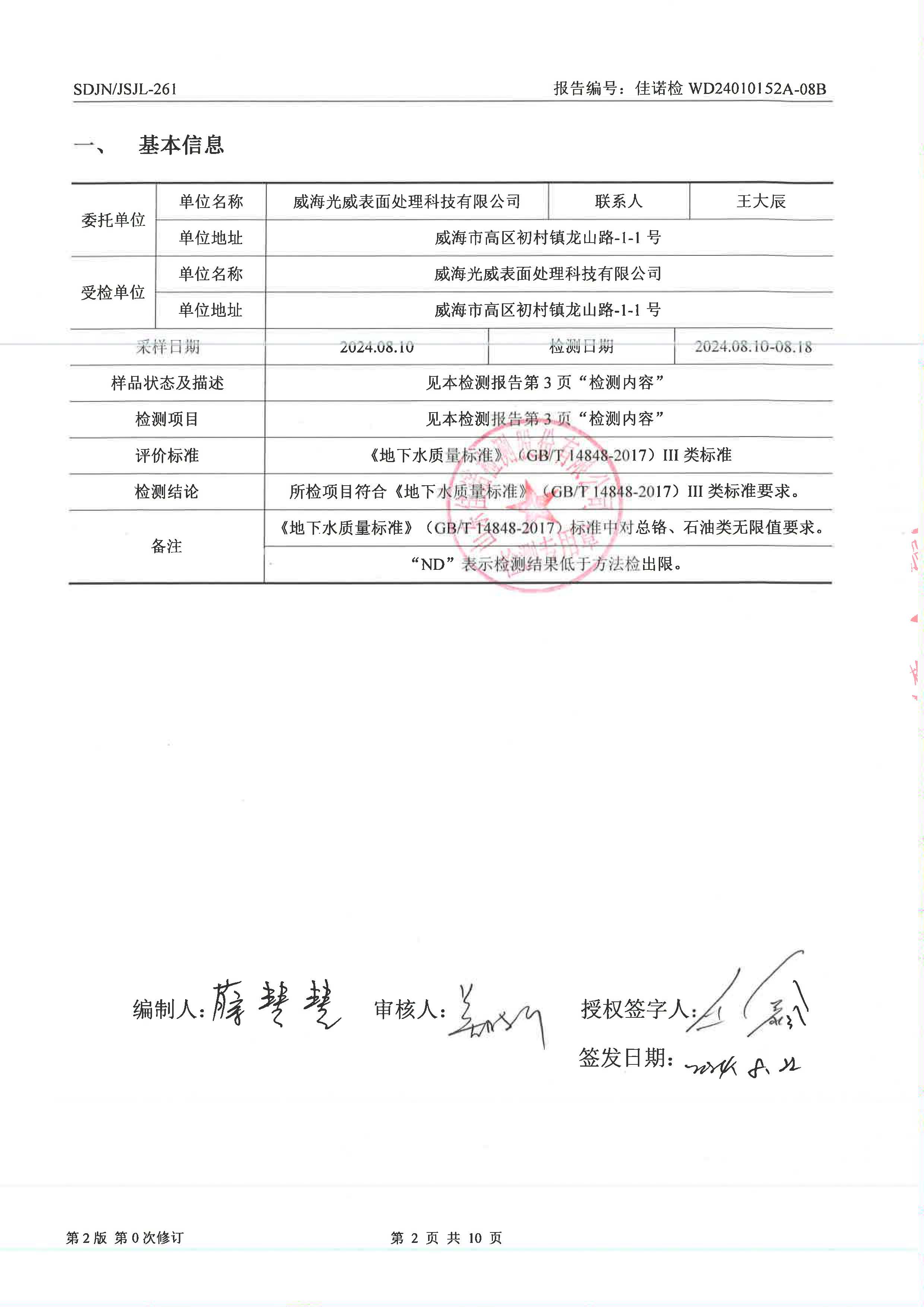 威海光威表面處理科技有限公司周期性檢測(cè)地下水